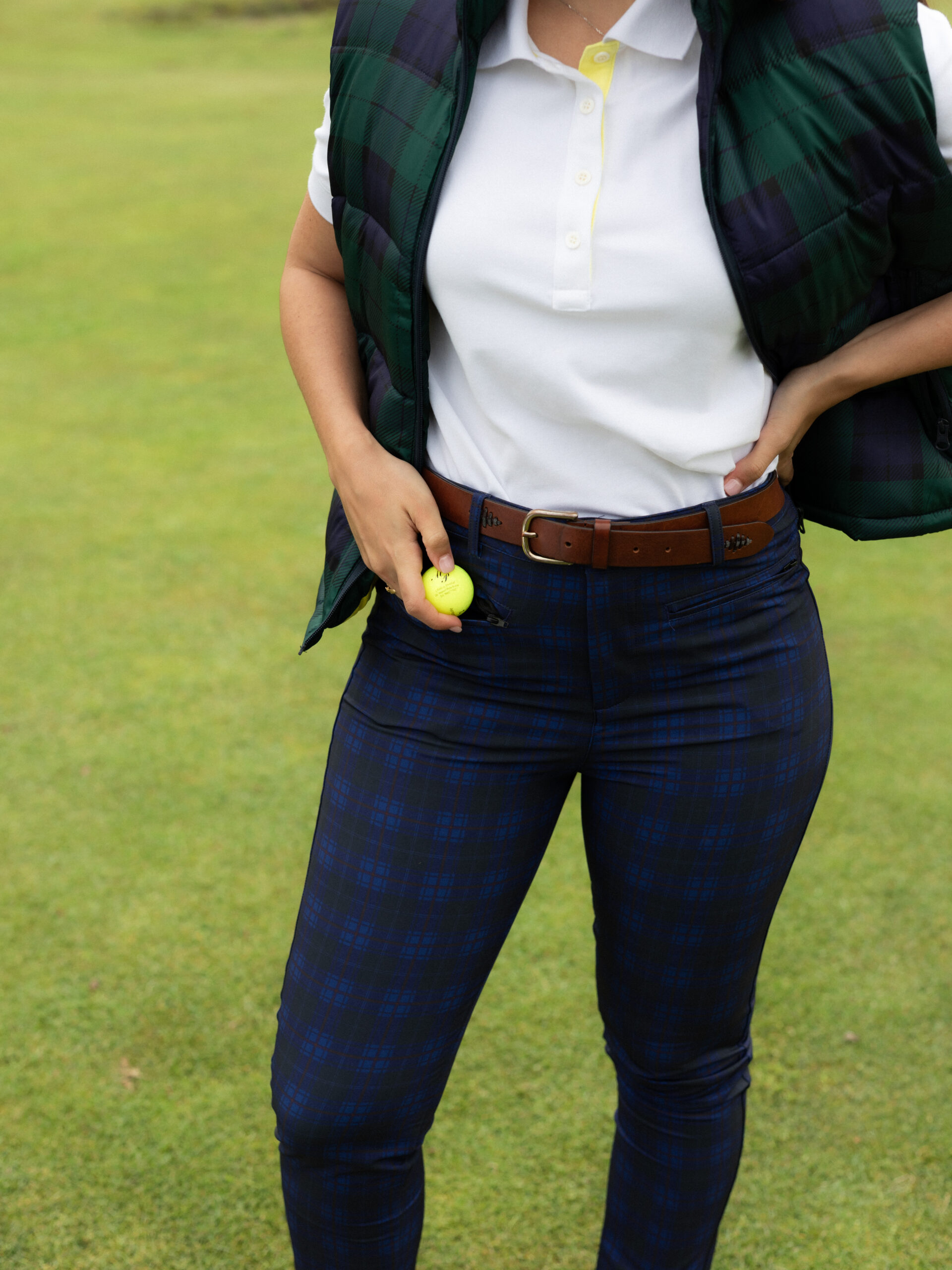 Our tartan trousers blend golf heritage with modern comfort. Their tailored fit enhances your silhouette without sacrificing freedom of movement, while the soft, stretchy fabric gives you the confidence to deliver your best swing on every hole.