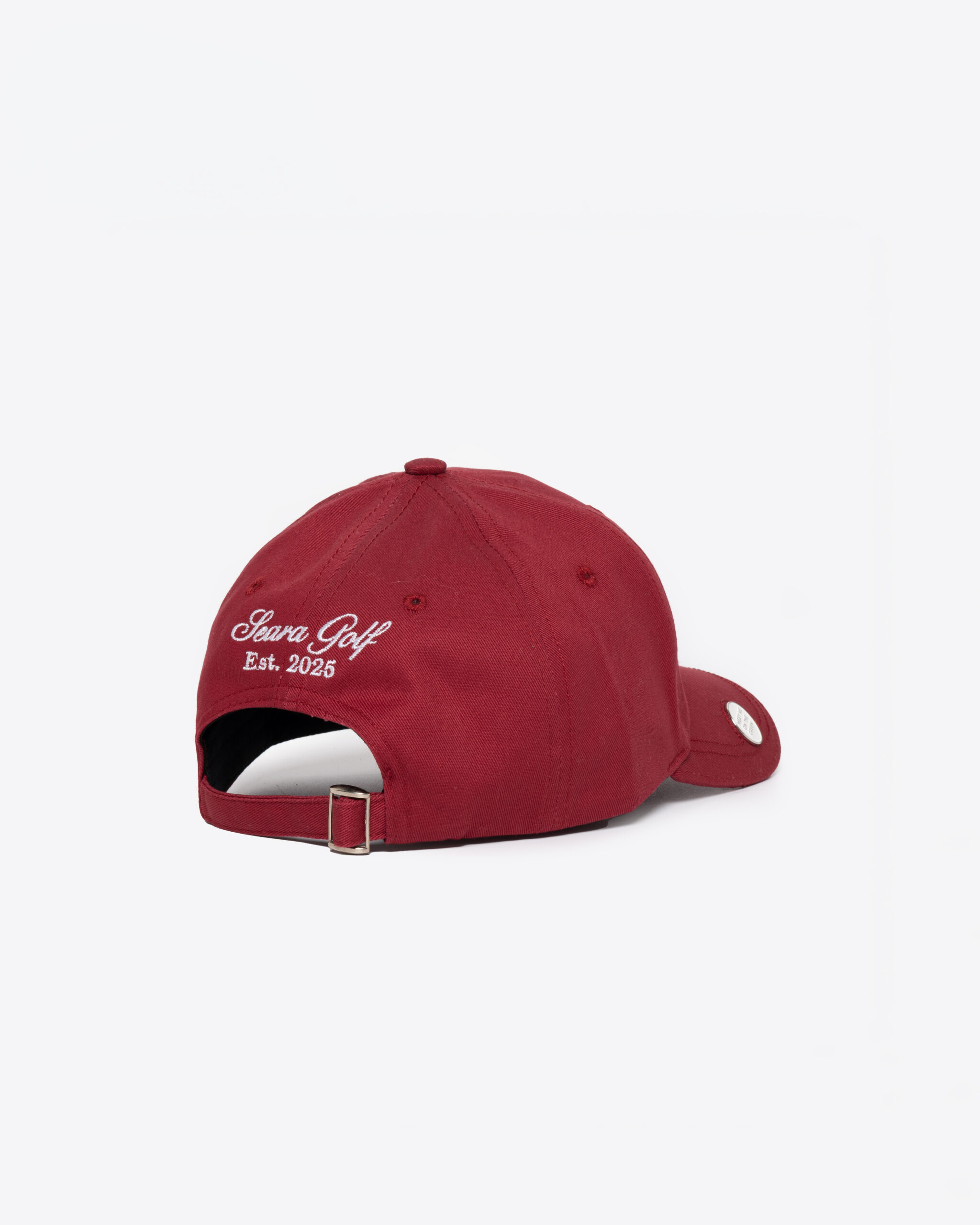 The Burgundy Ball Marker Cap is designed for those seeking a distinctive style without sacrificing elegance. Its burgundy tone adds a refined, sophisticated feel, standing apart from the conventional without becoming overstated. As a key detail, it features a magnetic ball marker integrated into the visor, always within easy reach for quick and precise marking.
